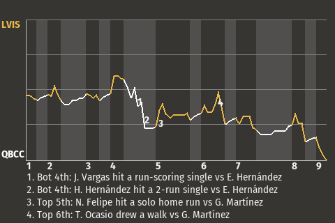 With scoring opportunities rare, the Dons had to cash in when they had the chance. One such opportunity presented itself in the bottom of the fourth, when left fielder Huáscar Hernández hit a 2-run single. The single came off Enrique Hernández and made the score 3-1, Dons. Hernández went 1-3, while adding 2 RBI.