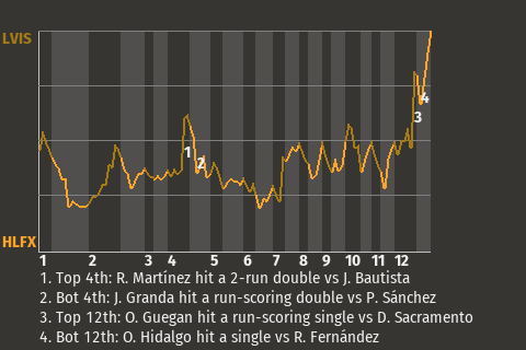 3 (4, 2nd Inning off P. Sánchez, 1 on, 0 outs; 4th Inning off P. Sánchez, 1 on, 0 outs; 6th Inning off P. Sánchez, 0 on, 0 outs)