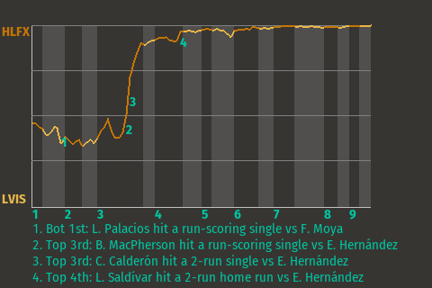 2 (9, 4th Inning off E. Hernández, 0 on, 2 outs; 6th Inning off A. Cortés, 2 on, 1 out)