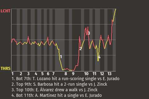 a - J. Arroyo pinch hit for T. Lozano in the 9th