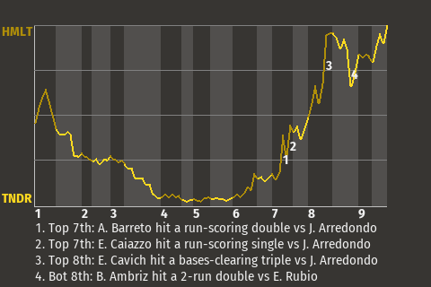 (5, 8th Inning off J. Arredondo, 3 on, 1 out)