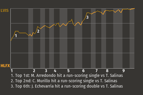 2 (15, 4th Inning off T. Salinas, 0 on, 1 out; 6th Inning off T. Salinas, 2 on, 0 outs)