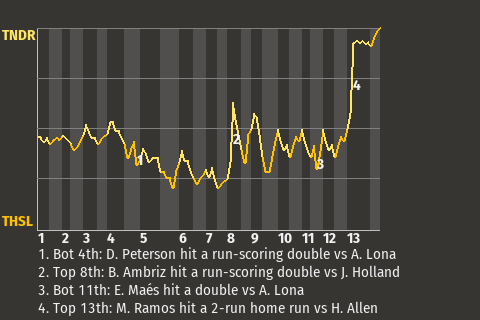 (13, 13th Inning off H. Allen, 1 on, 0 outs)