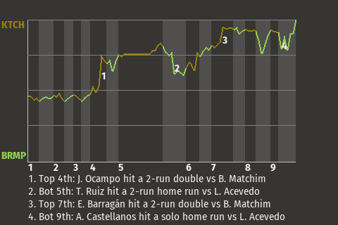 b - A. Quintana pinch hit for P. Díaz in the 9th