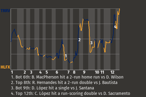 (10, 8th Inning off J. Bautista, 2 on, 1 out)