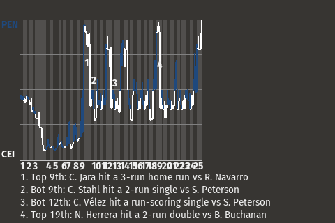 3 (3, 12th Inning off A. González, 1 on, 2 outs; 17th Inning off K. O'Leary, 0 on, 1 out; 25th Inning off J. Rivera, 1 on, 2 outs)