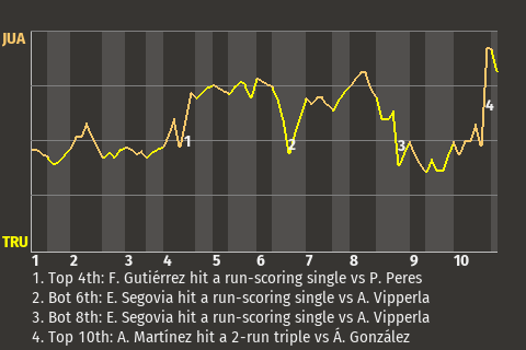 Juana Diaz relied on the hitting of Acasto Martínez to pick up the win. The right fielder ripped a 2-run triple in the top of the tenth inning to put the Reyes on top, 4-2. For the game, Martínez had 1 triple and 1 single in 5 at-bats.