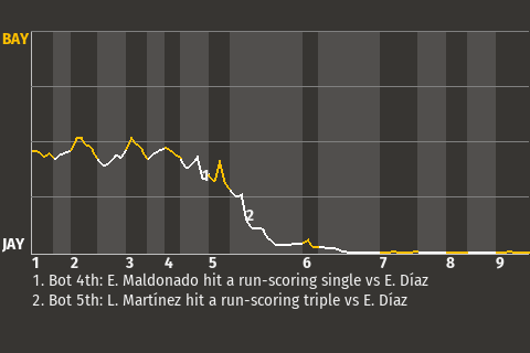 (9, 6th Inning off E. Díaz, 2 on, 0 outs)