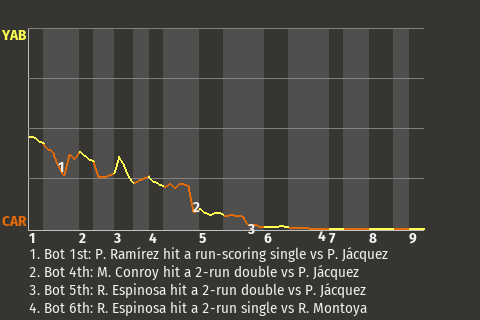 a - J. Pérez pinch hit for M. Conroy in the 7th