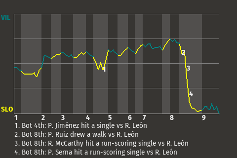 The game was at a stalemate until right fielder Pedro Serna came to bat in the bottom of the eighth. Facing Villalba pitcher Roberto León, he hit a 2-2 slider for a run-scoring single. It was a game-changer, putting San Lorenzo on top, 2-1.
