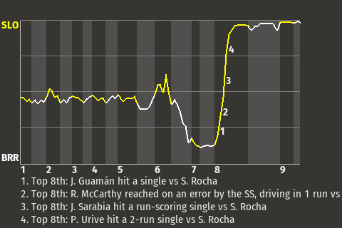 Rain delay of 22 minutes in the 3rd inning.