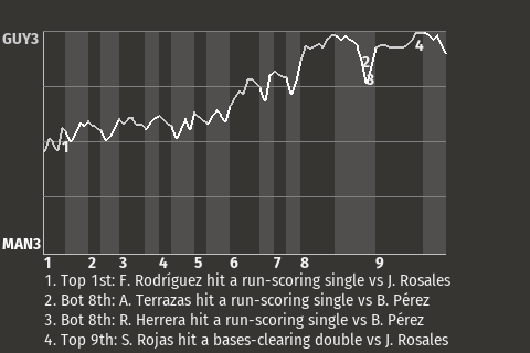 (1, 9th Inning off B. Pérez, 2 on, 1 out)
