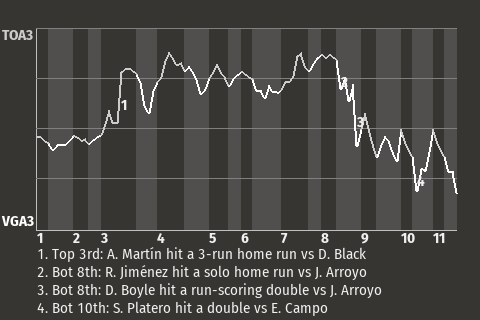 c - I. Yañes pinch hit for M. Rodríguez in the 8th