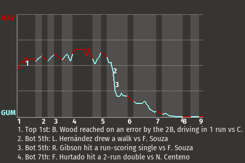 2 (6, 3rd Inning off F. Souza, 1 on, 2 outs; 7th Inning off N. Centeno, 2 on, 2 outs)