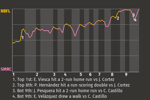 d - E. Velásquez pinch hit for S. Adame in the 9th