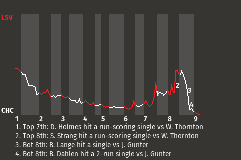 The game was at a stalemate until pinch hitter Bill Dahlen came to bat in the bottom of the eighth. Facing Louisville pitcher Jason Gunter, he hit a 3-1 fastball for a 2-run single. It was a game-changer, putting Chicago on top, 6-4.