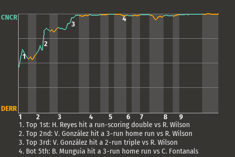 2 (3, 3rd Inning off R. Wilson, 1 on, 2 outs; 4th Inning off S. Gámez, 0 on, 2 outs)