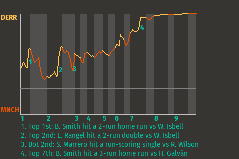 2 (3, 1st Inning off W. Isbell, 1 on, 2 outs; 7th Inning off H. Galván, 2 on, 1 out)