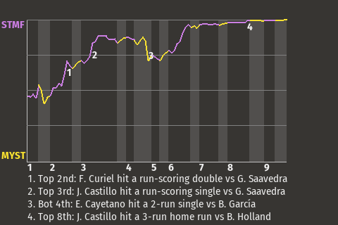 a - J. Castillo pinch hit for H. Leal in the 9th
