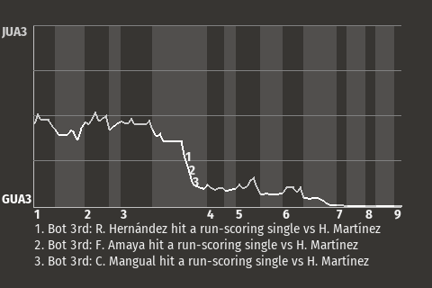 The Guayanilla hurler held Juana Diaz scoreless, allowed 6 hits, chalked up 3 strikeouts and yielded 3 walks.