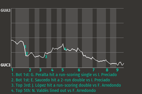 2 (2, 1st Inning off I. Preciado, 2 on, 2 outs; 6th Inning off I. Preciado, 0 on, 0 outs)