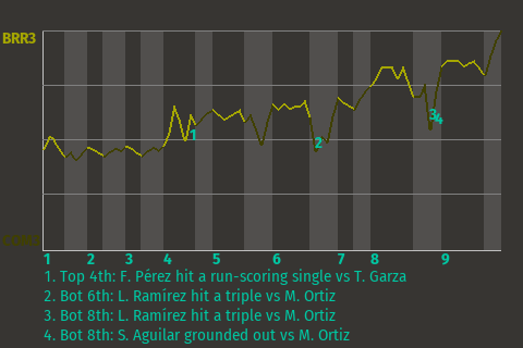 2 (4, 6th Inning off M. Ortiz, 0 on, 0 outs; 8th Inning off M. Ortiz, 0 on, 1 out)