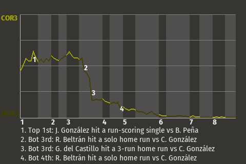 (3, 3rd Inning off C. González, 2 on, 1 out)