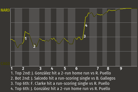 2 (6, 6th Inning off R. Puello, 0 on, 2 outs; 9th Inning off A. Cuara, 3 on, 1 out)