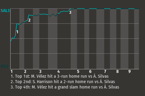 2 (7, 1st Inning off Á. Silvas, 2 on, 1 out; 4th Inning off Á. Silvas, 3 on, 2 outs)