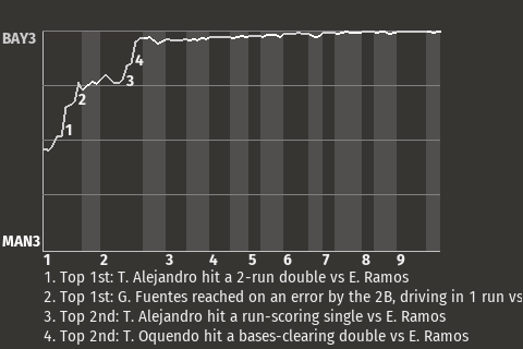 2 (Arvizo(Alejandro at 3rd base), Pereira(Valles at home))