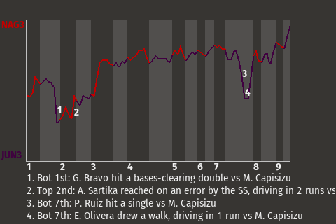 b - J. Rodríguez pinch hit for G. Bravo in the 7th