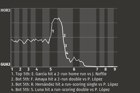 3 (12, 5th Inning off P. López, 3 on, 1 out; 6th Inning off G. Harrison, 0 on, 1 out; 6th Inning off C. Santana, 2 on, 2 outs)