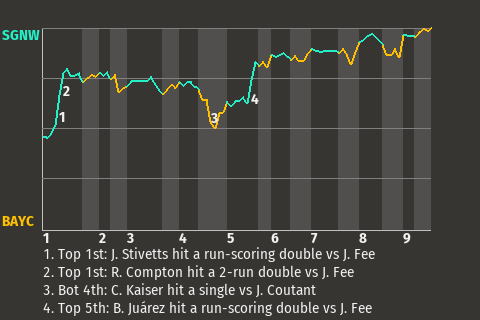 e - J. Moreno pinch hit for C. Kaiser in the 8th
