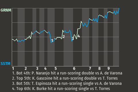 2 (22, 4th Inning off A. de Varona, 1 on, 1 out; 7th Inning off A. de Varona, 1 on, 2 outs)