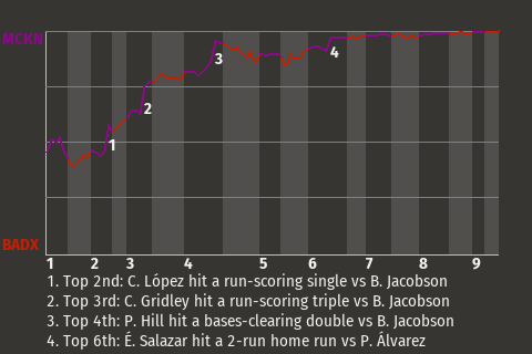 (25, 4th Inning off B. Jacobson, 3 on, 1 out)