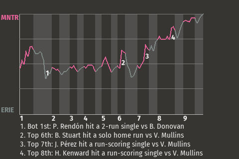 (3, 9th Inning off B. Donovan, 0 on, 0 outs)