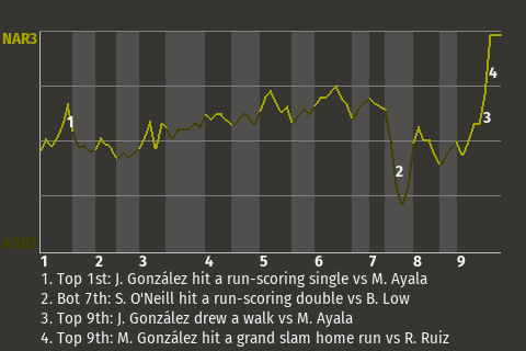 (2, 9th Inning off R. Ruiz, 3 on, 1 out)