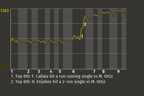 (1, 9th Inning off V. Hernández, 1 on, 1 out)
