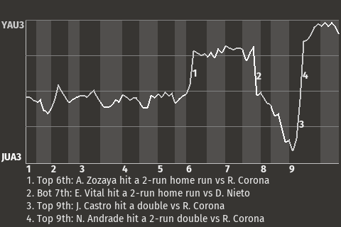 (4, 9th Inning off R. Corona, 2 on, 1 out)