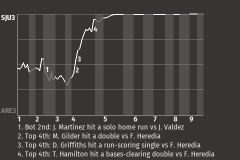 (9, 4th Inning off F. Heredia, 1 on, 0 outs)