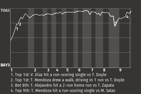 (3, 9th Inning off T. Zapata, 0 on, 1 out)