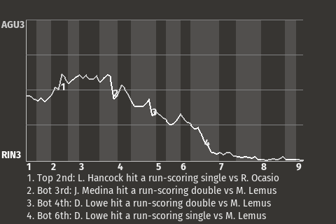 Declan Lowe hit a run-scoring double off Mario Lemus in the bottom of the fourth, which put the Maquinistas in front, 2-1. In addition to the double, Lowe had 1 single, while going 2 for 4.