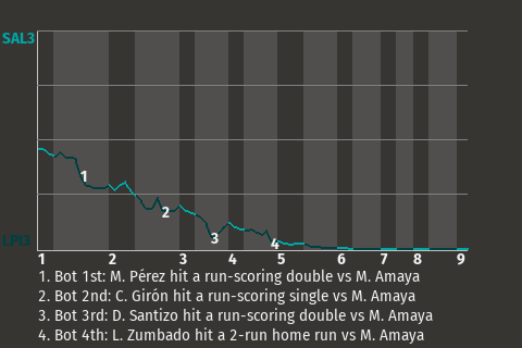 2 (5, 5th Inning off M. Amaya, 0 on, 0 outs; 6th Inning off C. Camarada, 1 on, 2 outs)