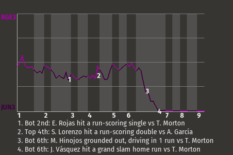 b - J. Hernández pinch hit for J. Romero in the 7th