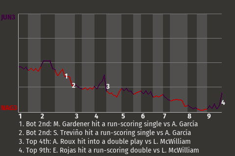 2 (15, 1st Inning off A. García, 1 on, 2 outs; 7th Inning off A. García, 1 on, 2 outs)