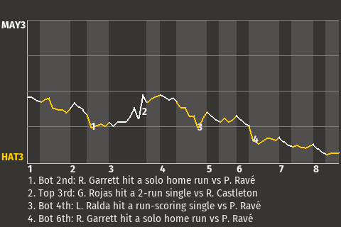 2 (6, 2nd Inning off P. Ravé, 0 on, 0 outs; 6th Inning off P. Ravé, 0 on, 0 outs)