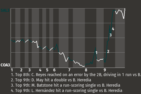 (7, 9th Inning off B. Heredia, 1 on, 1 out)