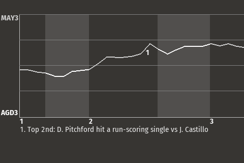 Mayaguez center fielder Dennis Pitchford contributed a timely at-bat in the top of the second. With two down, he hit a fastball to center field for a run-scoring single. It was his 69th hit of the season and put the Alfereces ahead, 2-0.