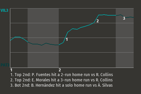 2 (5, 5th Inning off Á. Silvas, 0 on, 0 outs; 6th Inning off N. Quiñones, 2 on, 2 outs)
