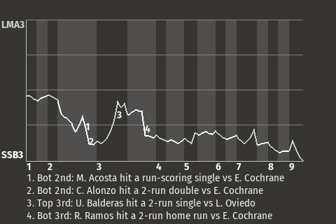 (1, 3rd Inning off E. Cochrane, 1 on, 2 outs)